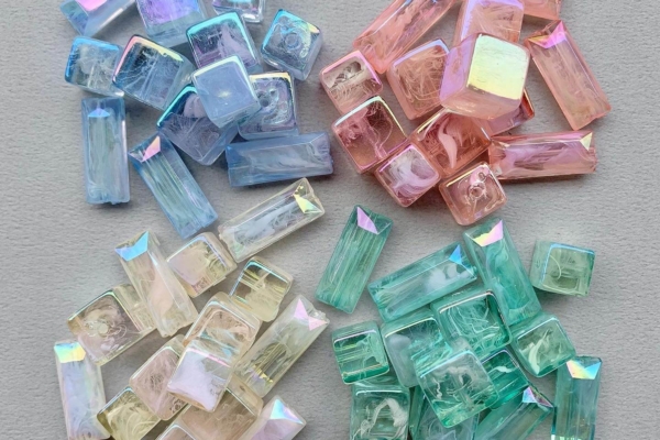 暖かくなるとついつい手に取ってしまう、 オーロラ加工が可愛いビーズが入荷しております◎ オーロラカラー長方形…
