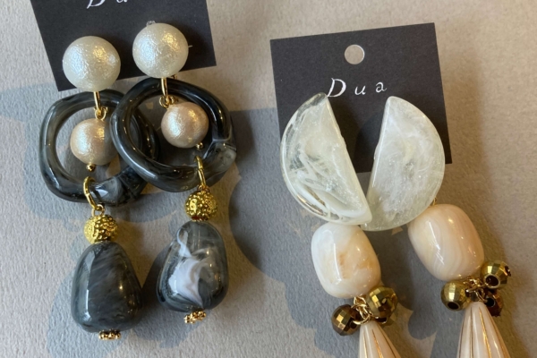 季節問わず合わせやすい樹脂パーツの耳飾り◎